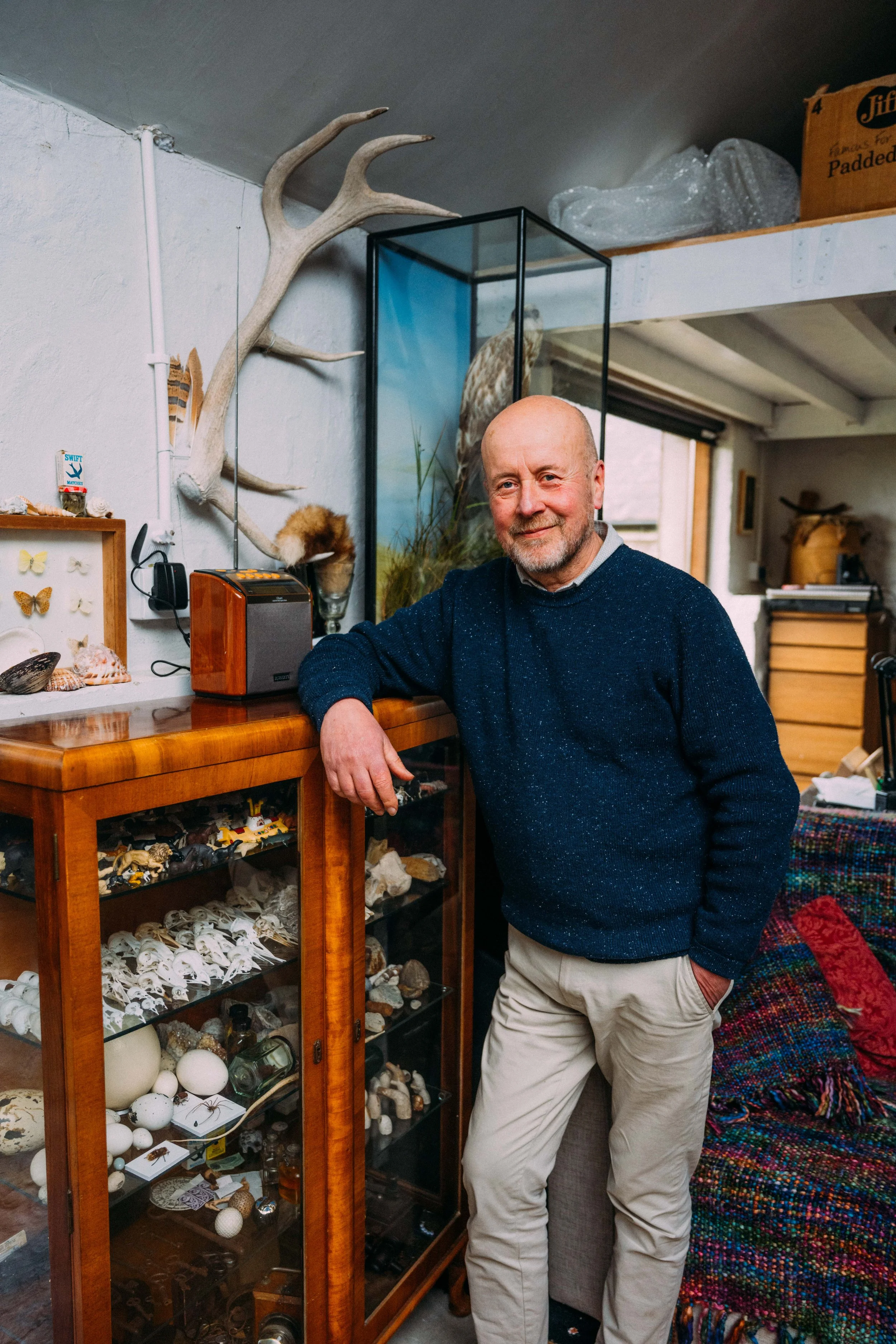 He paints mostly wildlife. Sometimes he paints from memory, sometimes from photos and sometimes using his collection of roadkill for reference (his collection of skulls will haunt me for life, but in a good way). He also paints native Irish animals which have since gone extinct, which really is the greatest job of all time.