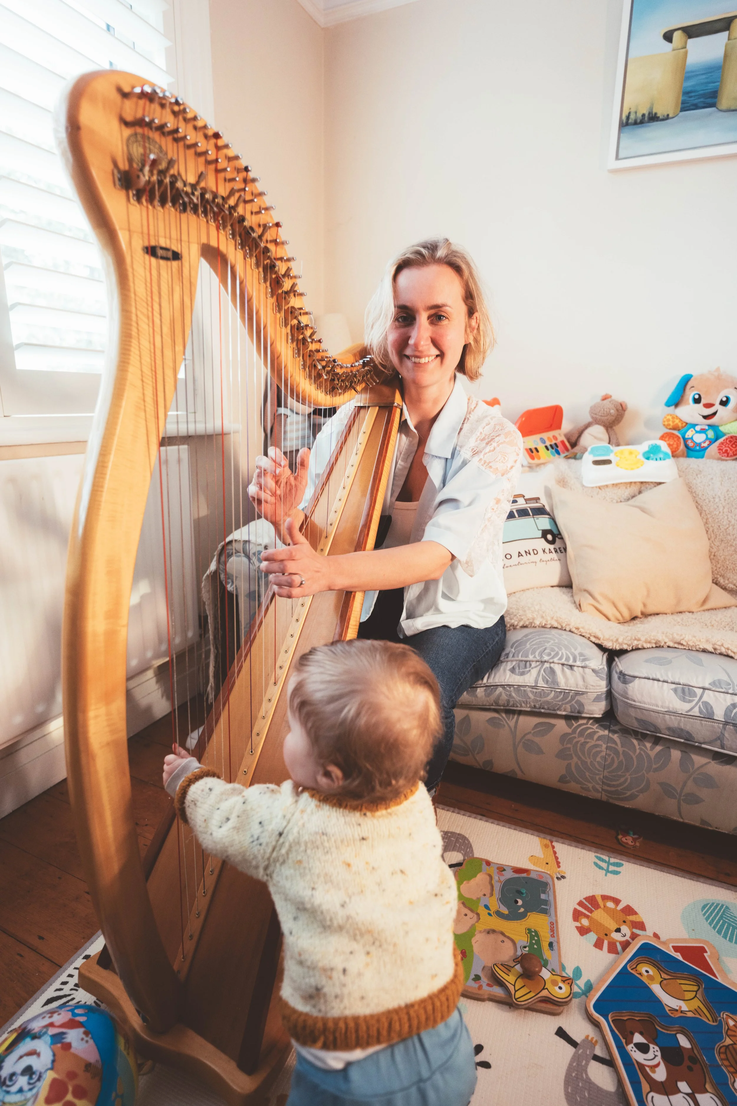 In steps the legendary Karen Cowley to save the day. In the last few years, Karen’s whole life has shifted. I’ve known her mainly as a musician in the band Wyvern Lingo but of late, she has stepped into motherhood and education (both as a student and a teacher) all while developing a passion for the harp (that someone randomly dropped on her doorstep).