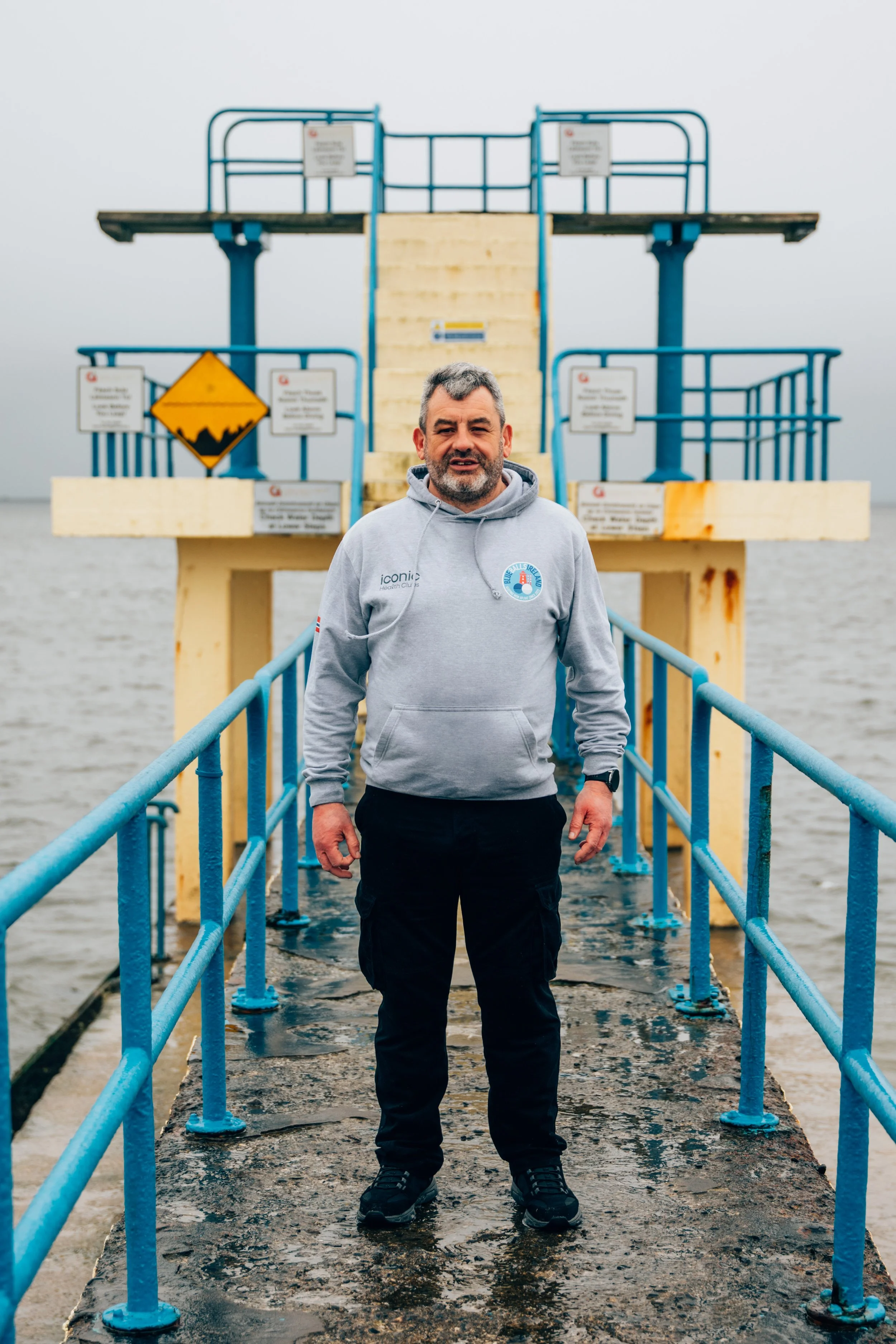 It’s a misty, grey day down in Galway. I met Eamonn at the Blackrock diving board, a place that so many people find comfort and solace in.
